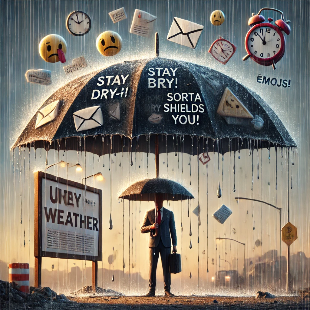 Picture this: an umbrella company so bad at its job, they produce umbrellas that leak negativity as much as rain. For some, feeling “under the weather” is like standing overhead of those very umbrellas—aggressively unable to halt the drizzle of modern expectations from up high! Who knew umbrellas could mislead as much as turncoat reputations?